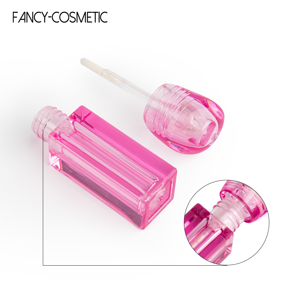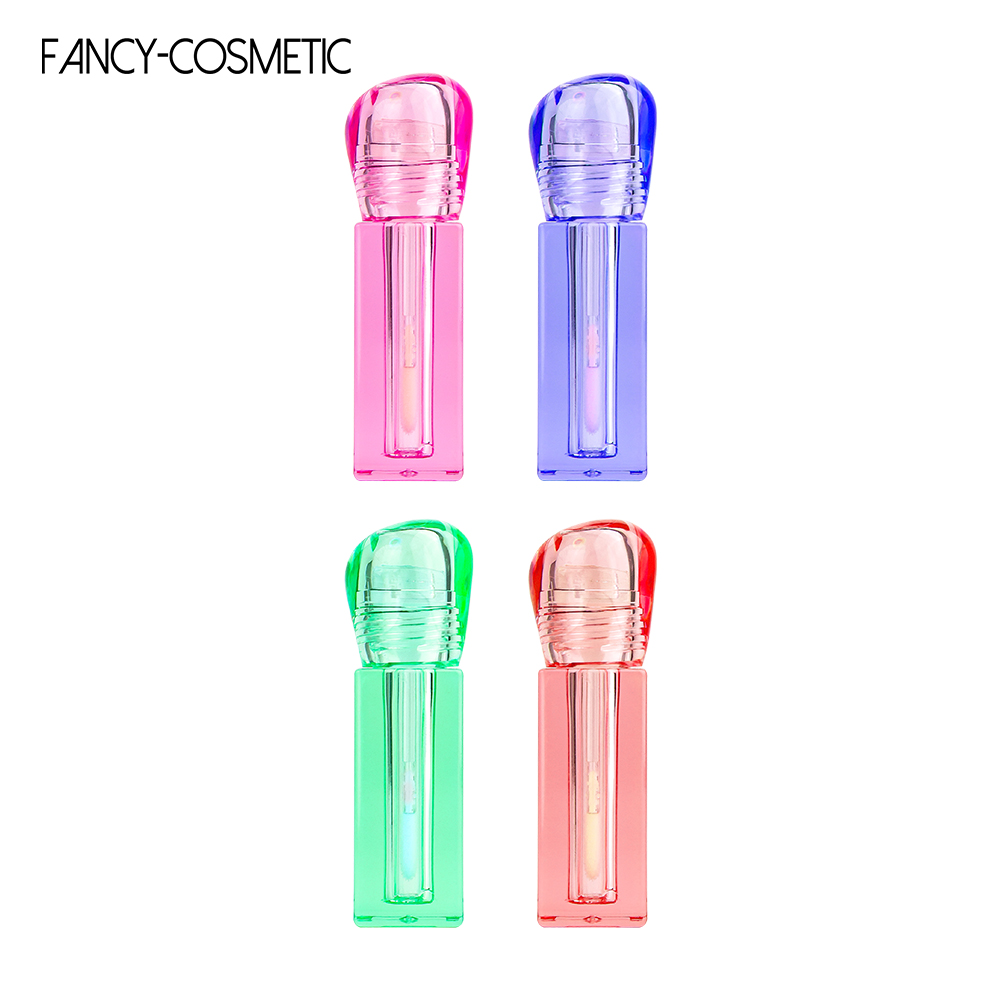 Colorful Round Lid Square Empty Clear Lip Gloss Bottle