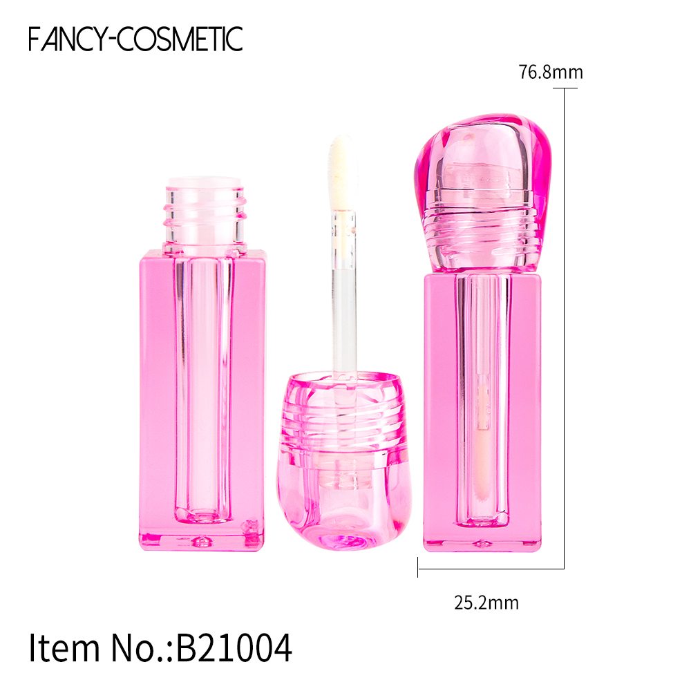 B21004 Colorful Round Lid Square Empty Clear Lip Gloss Bottle